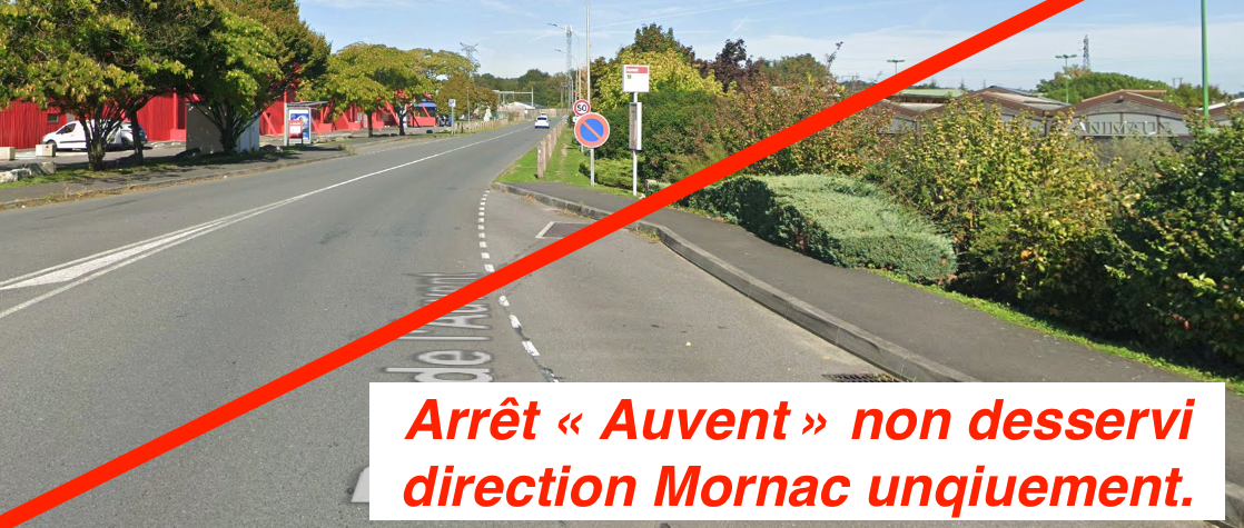 L'arrêt "Auvent" n'est pas desservi direction Mornac uniquement.