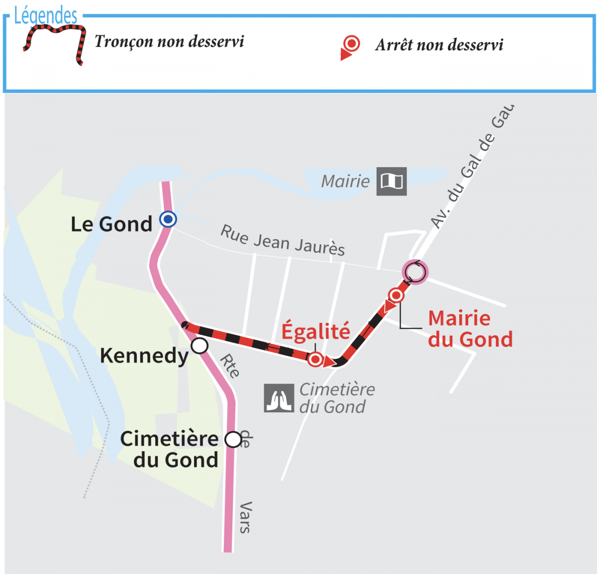 Les arrêts "Egalité", et "Mairie du Gond" ne seront pas desservis.