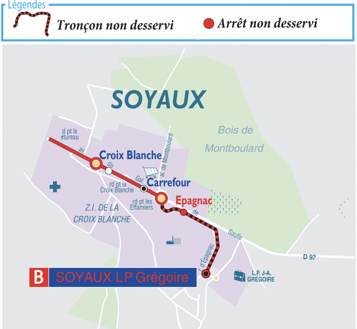 Les arrêts "L.P. Grégoire" et "Épagnac" ne seront pas desservis, les bus effectuerons leur terminus à "Carrefour".