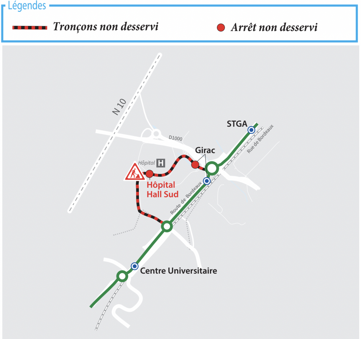 L'arrêt "Hôpital Hall Sud" ne sera pas desservi .