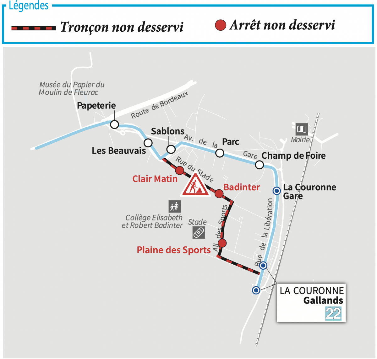 Déviation de la ligne 22 (à partir du 25/11) :