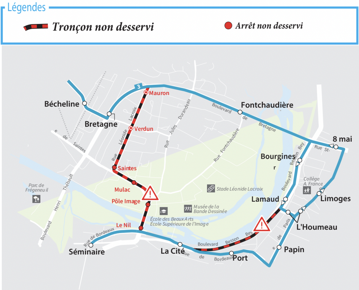 Le samedi 4 octobre entre 16h et 17h : Bus déviés sur le secteur de l'Houmeau et St Cybard.