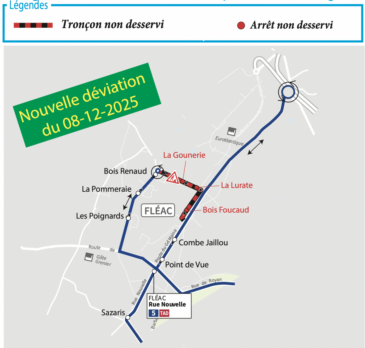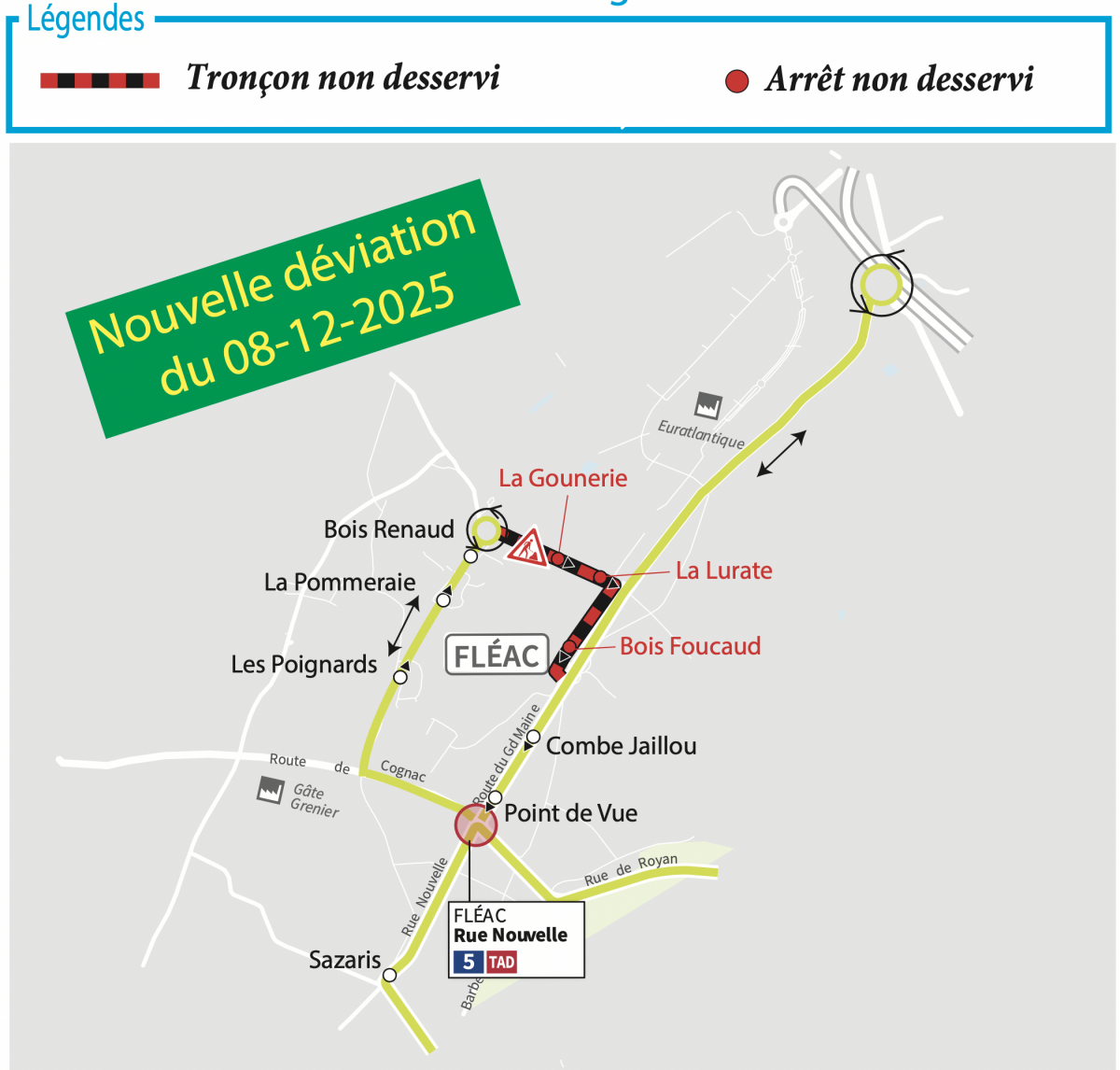 Les arrêts "Bois Renaud", "La Gounerie", "La Lurate", "Bois Foucaud", "Combe Jaillou" et "Point de Vue" ne seront pas desservis.