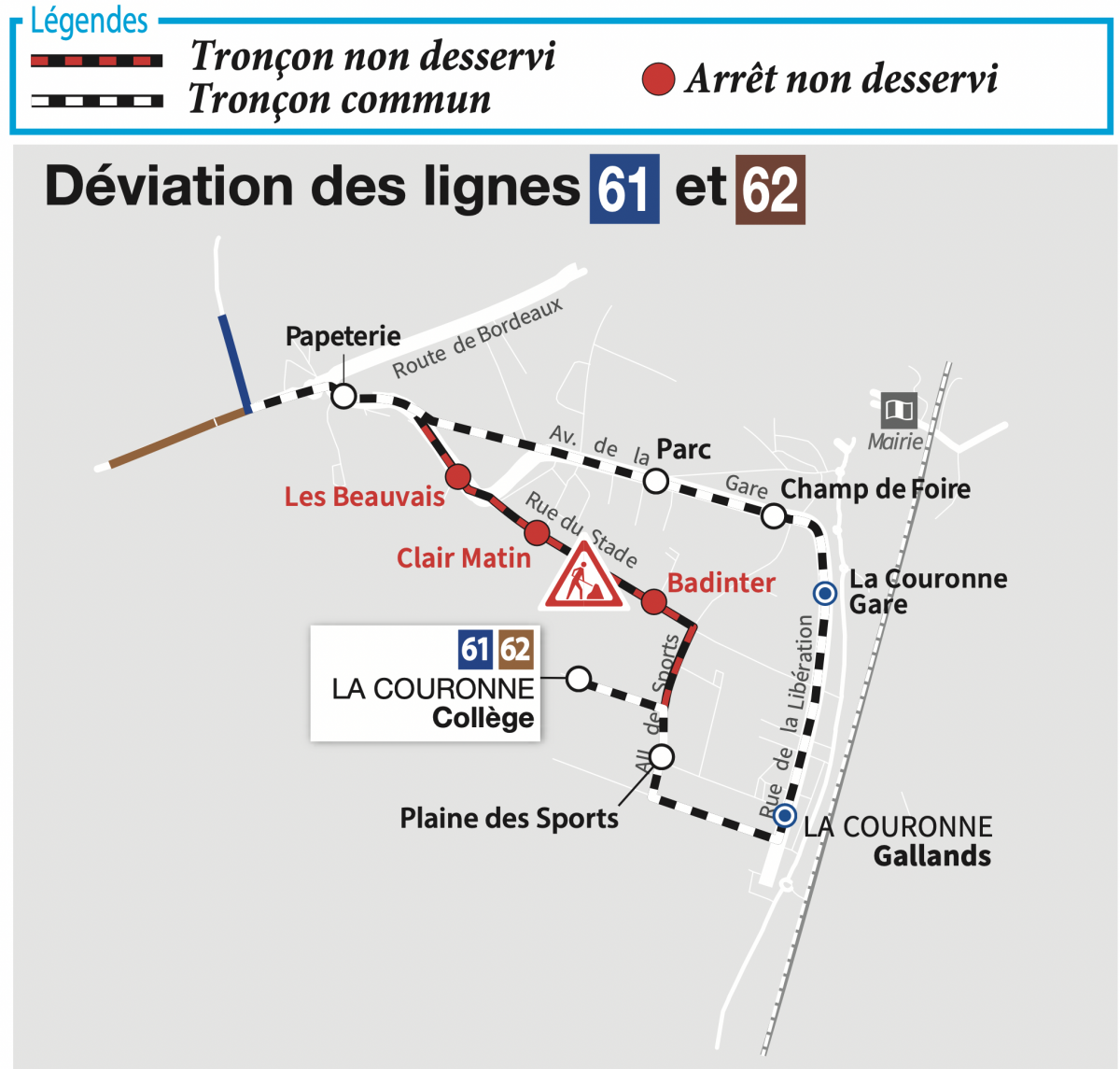 Lignes 61/62/75 : Travaux rue du Stade à La Couronne à partir du lundi 03/11