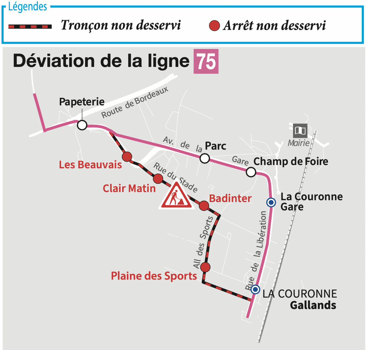 À partir du 03/11 : Travaux rue du Stade à La Couronne, lignes scolaires déviées dans le secteur.