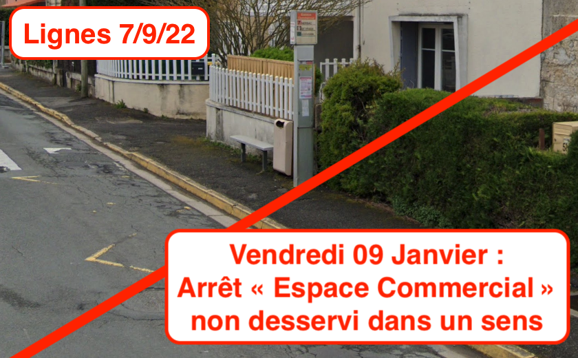 L'arrêt "Espace Commercial" ne sera pas desservi direction Nersac / St-Yrieix / La Couronne uniquement.