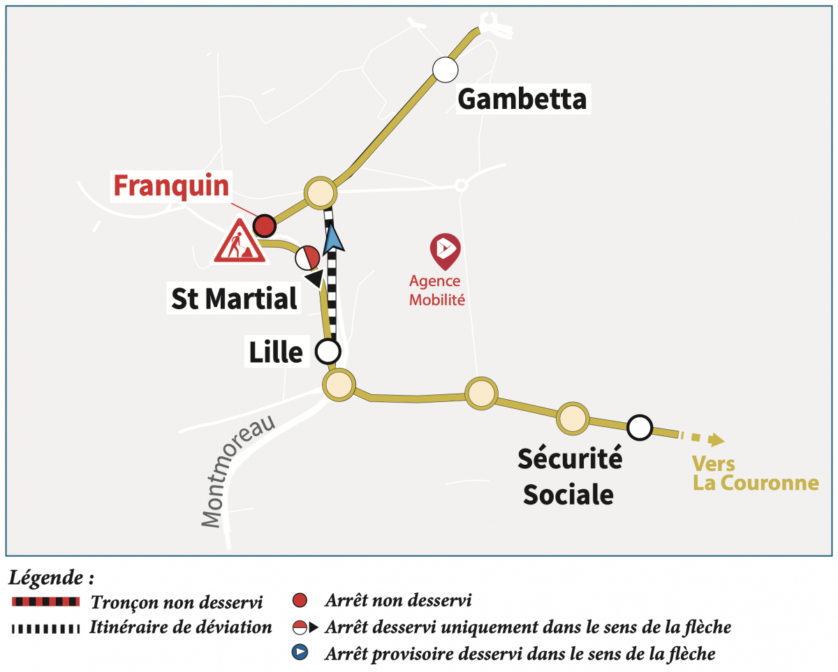 Direction La Couronne (matin) : nous vous invitons à vous reporter aux arrêts "Gambetta" ou "Les Halles".