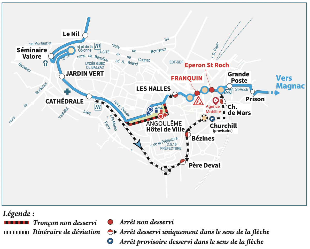 Direction Magnac : nous vous invitons à vous reporter aux arrêts "Cathédrale", "Churchill" ou "Grande Poste".