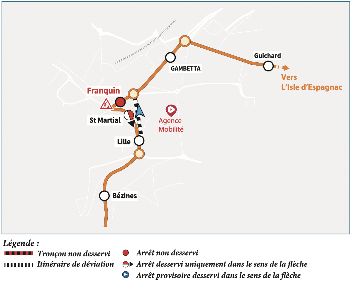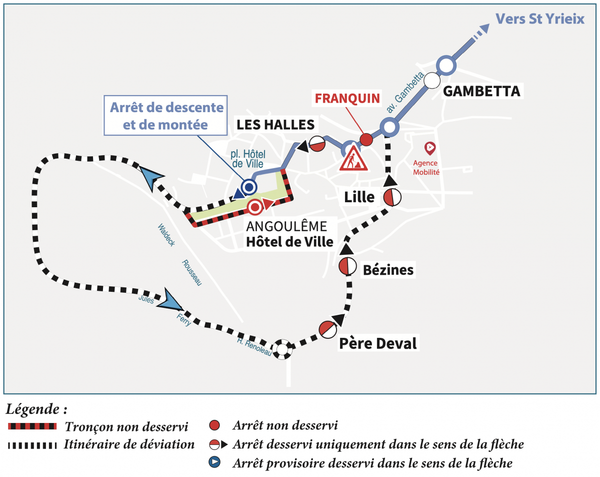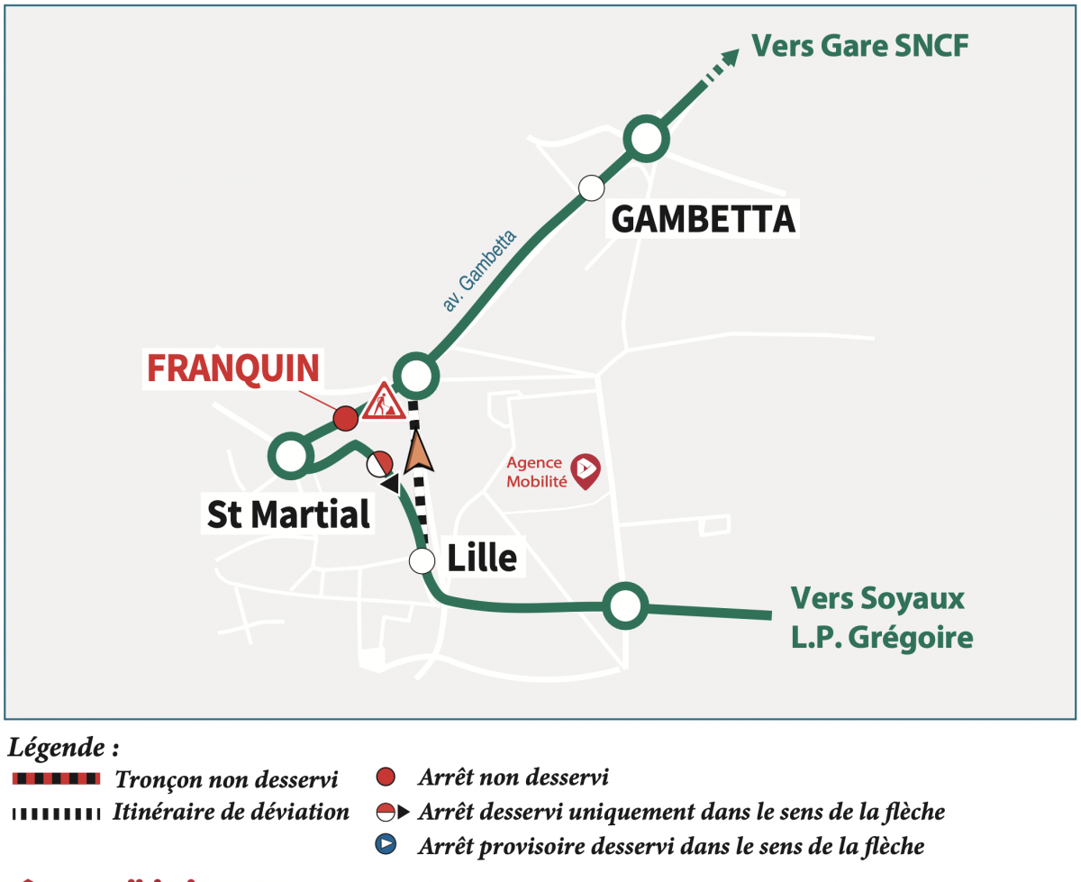 Direction St-Yrieix (matin) : nous vous invitons à vous reporter aux arrêts "Gambetta" ou "Les Halles".