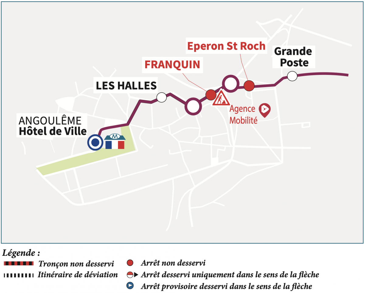 Les arrêts "Franquin" et "Éperon St-Roch" ne seront pas desservis dans les deux sens.